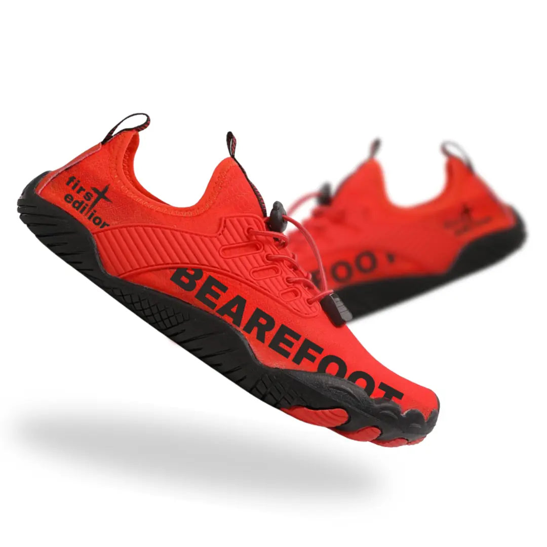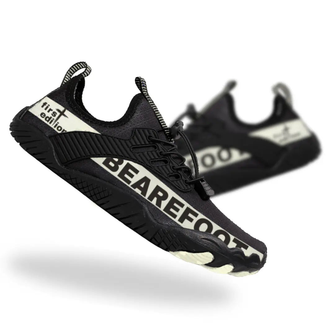 Bearefoot™ shoes are designed tomove naturallywith your feet.Unlike traditional shoesthat compress and cause pain,Bearefoot™shoesflexwith youat every step, providing thefreedomand supportyou need whether you’re running, hiking, or simply strolling. Thewide toe boxensures yourtoes can movecomfortably, enhancingstabilityand foothealth. Walkpain-freeand experiencetrue comfortwith Bearefoot™!